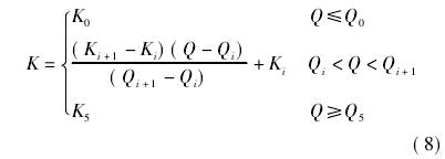 現有(you)速度式流量(liang)計的儀表系(xi)數非線性修(xiu)正常用的方(fang)法有線性插(chā)值法、三次樣(yang)條插值法和(he)最小二🥰乘法(fǎ):1-12]。考慮到新型(xing)渦輪流量計(jì)流量Q與儀表(biao)系數K的關系(xì)曲線爲單調(diao)遞增關系,較(jiao)🐪适合采‼️用線(xian)性插值方法(fǎ)進行修正。以(yǐ)流量計檢定(dìng)🛀🏻點作爲插值(zhi)函數的節點(dian),即各檢定流(liu)量點Qi(i=0,1,.5)對應的(de)儀表系數爲(wèi)Ki(i=0,1,.5),采取分💋段插(cha)值對其他流(liu)量點的儀表(biǎo)系數進行修(xiū)正👌,具體的計(ji)算表式爲: