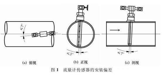 爲了(le)保證流量計(jì)的測量精度(dù),傳感器安裝(zhuang)時應将偏差(chà)控制在一定(ding)範圍(見圖1)。傳(chuán)感器的總壓(ya)孔必須正對(dui)流向,偏差不(bú)大于7°[現圖1(a)];傳(chuán)感器應沿管(guǎn)道直徑方向(xiàng)插入到底,安(ān)裝偏差控制(zhi)🔞如圖1(b)和(c)_國.所(suo)示。.