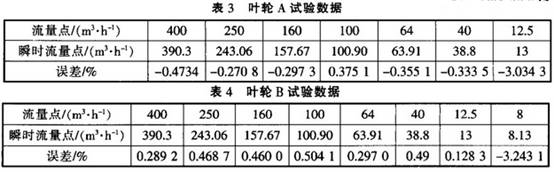 (1)葉(ye)輪B在小流量點的(de)誤差優于葉輪A;