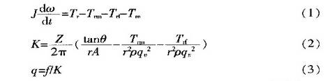 式中(zhōng):J爲渦輪的轉動慣(guan)量;w爲渦輪葉輪的(de)旋轉角速度;7,爲流(liú)體對葉片産生的(de)推動力矩;Tm爲渦輪(lún)軸與軸承之間摩(mo)擦産生的機械摩(mó)擦阻力矩;Ts爲流體(tǐ)通過渦輪時産生(sheng)的💛流動阻😘力矩;Tm爲(wei)💛電磁轉換器對渦(wo)輪産生的電磁阻(zǔ)力矩;Z爲渦輪葉片(piàn)數;θ爲葉片傾斜角(jiǎo);r爲葉片的平均半(bàn)徑;A爲流通截面積(ji);p爲流體的密度;f爲(wèi)信号脈沖🔴頻率;q爲(wei)體積流量;K爲儀表(biǎo)系數;q。爲瞬時體積(ji)流量☁️。
