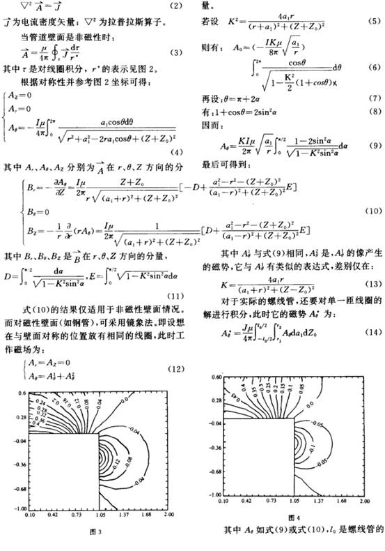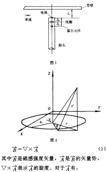 圖1中(zhong),插入式電磁流(liú)量計探頭的端(duān)部裝有一對電(dian)極,内部裝🌍有一(yi)勵磁線圈,在它(tā)的周圍産生工(gōng)作磁場。爲研究(jiū)磁場🏃🏻的詳細分(fèn)布狀況,先考慮(lü)單匝線圖📐。設其(qí)半徑爲α1,裝在離(li)端部Z。處,流過的(de)電流爲I,流體中(zhong)的磁介質常數(shu)爲μ。采用矢量勢(shì)的表示法有: