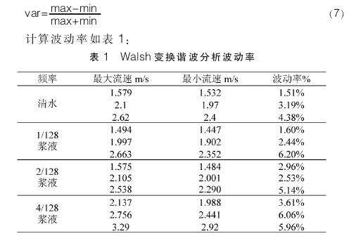 從表1可(ke)以看出Walsh變換(huàn)的波動率大(da)多數都處于(yu)5%以下,隻有當(dang)流速增大由(you)于漿液固體(ti)顆粒的碰撞(zhuàng)更加的頻繁(fan)導緻波動率(lǜ)