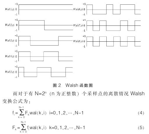 Walsh(沃爾(er)什)函數是[O,1]定(dìng)義在上完備(bei)、歸一化的正(zheng)交系,記✔️爲wal(n,k),具(ju)體波❄️形如圖(tú)2所示。其中k爲(wèi)自變量,n爲序(xù)率,表示Walsh函數(shu)在[0,1]間變号的(de)次數,Walsh函數的(de)矩形波幅值(zhí)的取值🌈爲+1或(huo)-1。