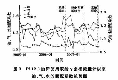 (2)定期标定。随(suí)着時間的推移,油(yóu)田産出液的液體(ti)組分及其含量會(huì)發生變化,同時流(liu)量計差壓.表的零(ling)點經過一.段時間(jiān)後也會發生漂移(yi),所以要定期對流(liu)量計進行标定。從(cóng)油田計量結果的(de)回配系數(圖3)可以(yi)看出,對流量計進(jin)行标定後其油氣(qì)水的誤差有明顯(xian)的下降趨勢。經過(guò)實踐,建議最好是(shì)3個月标定1次,至少(shǎo)要半年标定1次。對(duì)新投産的井或測(cè)量值出現明顯偏(pian)離的井,一定要進(jìn)行重新标定。