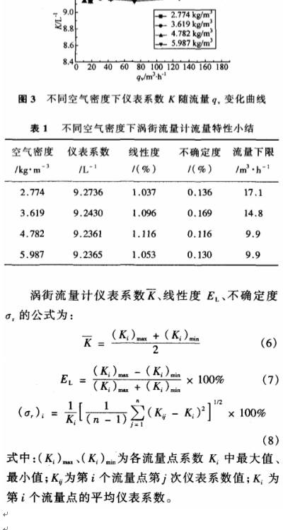 根據試驗得(de)到的數據,可(kě)繪制出如圖(tu)3不同空氣密(mì)度🧑🏾🤝🧑🏼下渦街儀(yí)💰表系數随流(liú)量變化曲線(xiàn),并得到渦街(jiē)流量計的流(liú)量特性🏃♂️見表(biao)1。