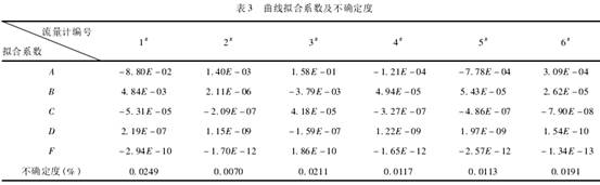 計算出6台渦輪流(liú)量計的拟合系數(shu)和不确定度,具體(ti)數據見表3。