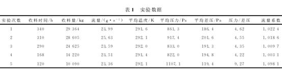 貧料收料采(cai)用單線運行模式(shì),用平衡流量計共(gòng)進行了5次測量實(shí)驗,每次實驗持續(xù)5~15d不等,累積收料量(liàng)從10~30t不等,實驗數據(jù)列于表1。