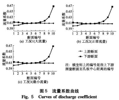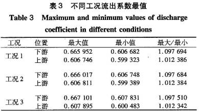 從圖中(zhōng)可以看(kan)出3種工(gōng)況,上遊(yóu)斷面的(de)流出系(xì)數随着(zhe)x1的增大(dà)逐漸變(biàn)大,且在(zai)斷面4達(da)到最大(dà)值後則(ze)不增加(jia)🍓;下遊斷(duàn)面的流(liú)出系數(shù)随着x2的(de)增加而(ér)又先減(jiǎn)小後變(bian)大的趨(qu)勢,且取(qu)🤟壓孔斷(duan)面距孔(kǒng)闆中心(xin)的距☎️離(lí)對流出(chu)系數影(yǐng)響更爲(wèi)明顯。不(bu)同工況(kuàng)下上下(xià)遊💔斷面(mian)流出系(xi)數最大(dà)值和🈲最(zuì)小值及(jí)其比值(zhi)如表3。從(cong)表3和圖(tú)4中可以(yǐ)看出流(liú)出系數(shù)和流量(liang)相關性(xìng)比較小(xiǎo),流出系(xi)🏃🏻數對下(xia)遊距離(li)較爲敏(min)感👉,下遊(you)各截面(miàn)上的🍓流(liu)出系數(shu)最大值(zhí)📱和最小(xiǎo)值之比(bi)爲🈲1.10。下遊(you)距離對(dui)流出系(xi)數🍓反應(ying)較爲遲(chí)鈍,上遊(you)🔴各截面(mian)上的流(liu)出系數(shu)最大值(zhi)和最小(xiǎo)值之比(bi)爲1.01。