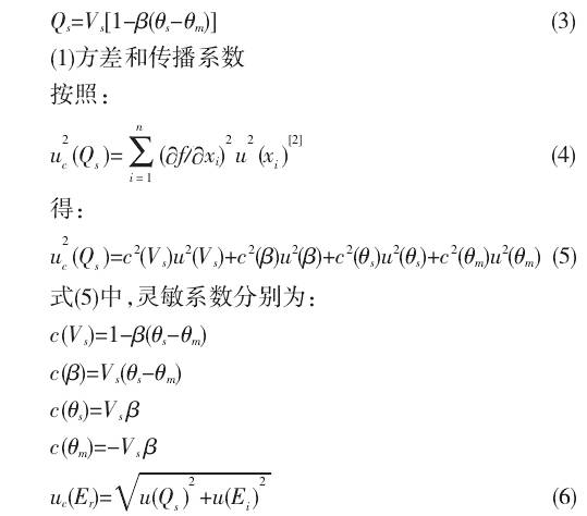 摘要:該文依(yi)據JJG1033-2007《電磁流量計 檢(jiǎn)定規程》,通過建立(li)數學模型,對電磁(ci)流量計測量結果(guo)示值誤😄差的不确(que)定度分量分析和(he)計算,并進行評定(dìng)和表示🌈。 0概述 (1)測量(liàng)依據:JJG1033-2007《電磁流量計(ji)檢定規程》。 (2)測量環(huan)境條件:環境溫度(dù)18.5℃,水溫18.0℃。測量标準:0.05級(ji)DN(15~600)mm水流量🧡标準裝置(zhì)🚩; (3)被測對象:電磁流(liú)量計,規格:DN80mm,量程範(fan)圍爲(8~80)m3/h,實際檢測流(liu)量點☎️qmax=77.284m3/h、0.75qmax=59.071m3/h、0.5qmax=40.227m3/h、0.25qmax=21.778m3/h、qmin=8.006m3/h。 (4)測量方法:将(jiang)電磁流量計水平(ping)安裝于水流量标(biao)準裝置,調節流量(liang)調節閥,用公稱流(liú)量通水,将水注入(ru)工作量器,讀出🆚電(diàn)磁流量🔞計顯示讀(dú)數,比較電磁流量(liàng)計過水量與工作(zuò)量器記錄的實際(ji)水量計算示⚽值相(xiang)對誤差。 1建立數學(xue)模型 1.1電磁流量計(ji)的基本誤差(相對(dui)示值誤差) 計算公(gong)式爲: 式(1)中:Eij--第i檢定(dìng)點第j次檢定被檢(jiǎn)流量計的相對示(shì)值誤🌍差,%; Qij--第i檢定點(diǎn)第j次檢定時流量(liàng)計顯示的累積流(liu)量值,m3; (Qs)ij--第i檢定點第(dì)j次檢定時标準器(qì)換算到流量計處(chù)狀🤩态的累積流量(liang)值,m3。 1.2由标準器換算(suan)到流量計處狀态(tài)的累積流量值 由(yóu)标準器換算到流(liú)量計處狀态的累(lèi)積流量值爲: 式(2)中(zhong):(Qs)ij--第i點第j檢定流過(guò)被檢表的累積體(tǐ)積流量,m3; Vs--标準器給(gei)出的實際累積體(ti)積流量,m3; β--檢定用液(yè)體在檢定條件下(xia)的體膨脹系數,取(qu)2.0×10-4℃-1; θs--第i點第j檢定時标(biao)準器處的液體溫(wen)度,現場校準時θs=18.0℃; θm--第(di)i點第j檢定時流量(liang)計處液體的溫度(dù),現場校準時θs=18.5℃; κ--檢定(ding)用液體在檢定條(tiao)件下的壓縮系數(shu),Pa-1; ps--第i點第j檢定時标(biao)準器處的液體壓(ya)力,Pa; pm--第i點第j檢定時(shi)流量計處的液體(tǐ)壓力,Pa; 對于體積流(liu)量(Qs)ij的計算,由于水(shuǐ)的體積壓縮系數(shu)很小🔞,當壓🐇力🧑🏾🤝🧑🏼變化(huà)不大時,可将水看(kàn)作是不可壓縮流(liú)體[3],因此實際計算(suàn)時式(2)可簡化爲: 1.3不(bu)确定度分量的計(ji)算 (1)水流量标準裝(zhuāng)置的不确定度u(Vs)和(hé)靈敏系數c(Vs) 查閱證(zhèng)書得知,水流量标(biao)準裝置的不确定(ding)度:Urel=0.05%,k=2;則ur(Vs)=0.025%,以🐆原始🈲記錄(lu)中的測量點0.5qmax=40.227m3/h爲例(lì),此時标準體積的(de)平均值爲2.931m3,則: u(Vs)=2.931×0.025%=7.2375×104m3 (7) 靈敏(mǐn)系數: c(Vs)=1-β(θs-θm)=1-2.0×10-4(18.0-18.5)=1.0001≈1 (8) 則: c(Vs)×u(Vs)=7.2375×10-4m3 (9) (2)檢測介質(zhì)水體膨脹系數的(de)不确定度u(β)和靈敏(mǐn)系數c(β) 查閱資料知(zhī)溫度在(0~30)℃範圍内水(shui)的體膨脹系數的(de)界限爲📧±0.5×10-4℃,假🈚定滿足(zu)矩形分布,則: 靈敏(min)系數: c(β)=Vs(θs-θm)=3×0.5=1.5m3·℃-1 (11) 則: c(β)×u(β)=0.4335×10-4m3 (12) (3)标準器處(chù)液體溫度引入的(de)不确定度u(θm)和靈敏(mǐn)系數c(θs) 水溫測量所(suo)用溫度計其誤差(chà)限爲±0.2℃,假定滿足矩(jǔ)形♌分布則 靈敏系(xì)數: c(θs)=Vsβ=3×2×10-4=6×10-4m3·℃-1 (14) 則: c(θs)×u(θ)=0.69×10-4m3 (15) (4)被檢流量計(jì)處液體溫度引入(ru)的不确定度u(θm)和靈(líng)敏系數c(θm) 水溫測量(liang)所用溫度計其誤(wù)差限爲±0.2℃,假定滿足(zú)矩形分布,則 靈敏(min)系數: c(θm)=Vsβ=-3×2×10-4=-6×10-4m3·℃-1 (17) 則: c(θs)×u(θ)=-0.69×10-4m3 (18) (5)合成标準(zhǔn)不确定度uc(Qs)和相對(dui)不确定度ur(Qs)由公式(shì)(1)知: 1.4測量重複性引(yǐn)入的不确定度 對(dui)電磁流量計相對(duì)示值誤差試驗做(zuò)了三次重複測量(liàng)📐,測量結果如下:0.15%;0.13%;0.20%。利(li)用貝塞爾公式: 則(zé)平均值試驗标準(zhǔn)偏差: 2合成标準不(bú)确定度和擴展不(bu)确定度 計算合成(chéng)标準不确定度: 3不(bu)确定度來源分析(xi)一覽表 根據原始(shǐ)記錄和1.3中公式分(fen)别對被檢表五個(ge)流量點引入的🛀🏻不(bu)确定u(Qs)和測量測量(liàng)重複性引入的不(bu)确定度🌂u(Ei)進行📧不确(que)定計算分析,如表(biǎo)1所示。 4擴展不确定(ding)度彙總表 5結論 本(ben)次不确定度評定(ding)選取的是帶換向(xiàng)器的靜态容積法(fǎ)水流量标準裝置(zhi),依據JJG1033-2007《電磁流量計(ji)檢定規程》對五個(ge)流🎯量點進行校準(zhun)和不确定度評定(dìng),保證量值傳遞的(de)一緻性和正确率(lü),以期爲排污收稅(shui)、貿易結算等提供(gòng)合法有效的計量(liang)技術支撐✏️