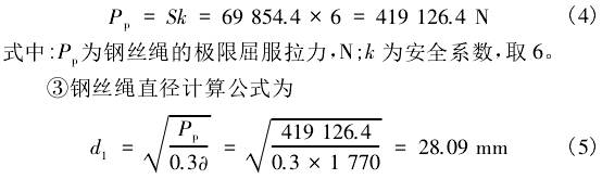 式中(zhōng):d1爲鋼絲繩直(zhí)徑,mm;爲抗拉強(qiang)度,按1770N/mm2計。