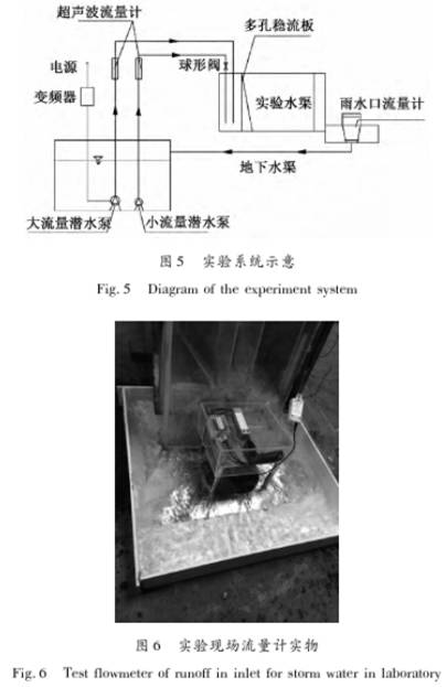 率(lü)定實驗(yan)系統如(ru)圖5所示(shì),實驗通(tōng)過渠道(dào)長2000mm的穩(wen)流明渠(qú)向80mmx80mm的集(ji)水槽供(gòng)水,水流(liu)以任意(yi)方向通(tōng)過導流(liu)管進入(rù)流量計(ji),模拟現(xiàn)實條件(jiàn)下雨水(shui)進入雨(yǔ)水口場(chang)景。爲滿(mǎn)足GB50014一2006《室(shi)外排水(shui)設計規(gui)範》中規(gui)定雨水(shuǐ)口🚶實際(ji)洩水能(neng).力的極(ji)限值凹(āo),使用不(bu)同流🤟量(liàng)的2台水(shui)泵供水(shuǐ),小流量(liàng)潛水泵(beng)的最大(da)流量爲(wei)4.5L/s,大流量(liàng)潛水泵(bèng)的最大(da)流量爲(wei)10L/s。在較小(xiao)流量時(shi),由1根直(zhí)徑爲㊙️63mm的(de)PVC管供水(shuǐ),使用球(qiu)形閥控(kong)制流量(liàng)大小;在(zài)💯較大流(liu)量時,由(you)1根直徑(jing)爲110mm的PVC管(guan)引水到(dao)渠道前(qian)端由水(shui)泵🤟變頻(pín)器控制(zhì)進水流(liu)量。整個(ge)過程🆚使(shǐ)用.超聲(shēng)波流量(liàng)計計量(liang)實🏒際流(liu)量;雨水(shuǐ)口流量(liang)計使用(yòng)DC電壓記(ji)錄器紀(jì)錄電壓(yā)⛱️值,通過(guò)式4)計算(suan)理論流(liu)量。渠道(dao)前端放(fang)置2塊多(duo)孔闆🐪穩(wěn)定來流(liu)避免水(shuǐ)面動蕩(dàng)。.渠道的(de)出水通(tong)過流量(liang)計之後(hòu)進入地(dì)下水渠(qú)流入地(dì)下水庫(ku),泵從水(shuǐ)庫抽水(shui)到實驗(yàn)水渠,循(xún)環供🌈水(shui)。實驗現(xian)場流量(liàng)計實物(wu)如圖6所(suǒ)示。
