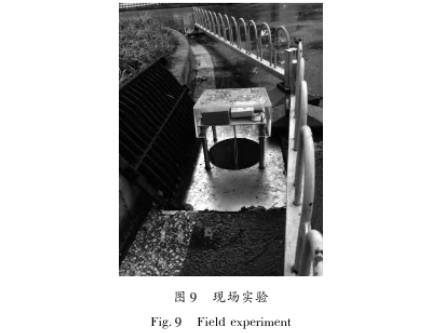 爲驗證(zhèng)雨水口(kou)流量計(jì)的實際(ji)效果,在(zài)北京某(mou)校園的(de)道路雨(yǔ)水口上(shàng)安裝了(le)該流量(liang)計,現場(chang)實驗裝(zhuāng)置如圖(tú)‼️9所示。
