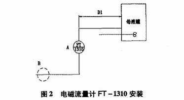 丙烯酸裝(zhuang)置内有一(yi)台電磁流(liú)量計,其原(yuan)安裝位置(zhi)如圖2所示(shi)。其前後直(zhí)管段長度(dù)及接地均(jun1)符合要求(qiu),但是開車(chē)🌐後流量示(shì)🤟值一直跳(tiào)動,且查不(bú)出來原因(yin)。一個偶然(rán)的機👄會,母(mu)液🔴罐的攪(jiǎo)拌器停止(zhi)運行後卻(que)發現電磁(cí)流量計示(shi)值穩定了(le)🈲。經檢查發(fā)現,此攪拌(bàn)🍉器示側壁(bì)安裝,且位(wei)置距電磁(cí)流量計管(guǎn)線出口翻(fan)♌起的波浪(làng)改變了管(guǎn)道出口的(de)阻力。電磁(cí)流量💁計出(chū)口到容器(qì)壁的距離(lí)D1約1.5m,由于距(jù)離太短,攪(jiǎo)拌波浪使(shǐ)管道出口(kou)的壓力波(bō)動,從而使(shǐ)電磁流量(liang)計出口流(liú)速不穩,使(shǐ)電磁流量(liang)計示值産(chǎn)生跳動。後(hòu)将電磁流(liú)量計從A位(wei)置移到B位(wèi)置,距原安(an)裝約10m,電磁(ci)流量計才(cái)得以正常(chang)運行。