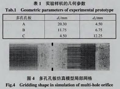 圖2爲多(duo)孔孔闆流(liu)量計結構(gou),其中圖2(a)爲(wei)流量計的(de)整體結構(gòu),圖2(b)爲多孔(kǒng)孔闆的結(jié)構及參數(shù)定義.圖2(b)中(zhong)D爲多孔孔(kǒng)闆流量計(ji)的管徑;D1爲(wèi)中心節流(liú)孔直徑;D2爲(wèi)環狀排列(liè)🐆孔直徑📧;D3爲(wèi)環狀♈排列(liè)孔的中心(xin)💯圓直徑;多(duo)孔孔闆中(zhong)心節流孔(kǒng)與環形排(pái)列孔之間(jiān)的距離爲(wèi)d,環形排列(lie)孔與管壁(bi)之間的距(ju)離爲d2.圖3爲(wèi)多孔孔闆(pan)實驗樣機(ji),dh、dh的大小決(jué)定了射流(liu)間回流區(qu)及壁面回(hui)流區的尺(chǐ)寸,因此表(biǎo)1中給出了(le)各樣機的(de)d1、d2的具體數(shu)值.