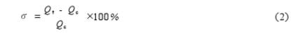 對(dui)渦街流量計(ji)的測量誤差(cha)用式(2)來計算(suan):