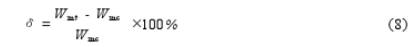 實(shí)驗管段中渦(wo)街流量計測(ce)得的混合流(liu)體的質量流(liú)量Wmt通過式(6)計(jì)算得到因此(cǐ)最終實驗管(guan)段渦.街流量(liàng)計的測量誤(wù)差用式(8)計算(suan),δ爲相對誤差(chà),表示了實驗(yan)管段中渦街(jiē)流量計測量(liang)得到的氣液(yè)混合流體的(de)質量流量與(yu)真實值之間(jian)的相對誤差(cha)。