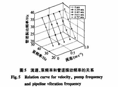對(dui)表2的重複性數據(ju)計算平均值,并由(you)平均值畫出了流(liu)速、泵頻率和管道(dao)振動頻率的關系(xì)曲線,如圖5所示.分(fèn)析結果表明,不論(lun)試驗裝置工況如(ru)何,管道☁️振動信号(hao)的頻率和能量隻(zhi)與泵工作頻率相(xiang)關,泵👌頻率越大,則(ze)振動信号的頻率(lǜ)和能量越大.