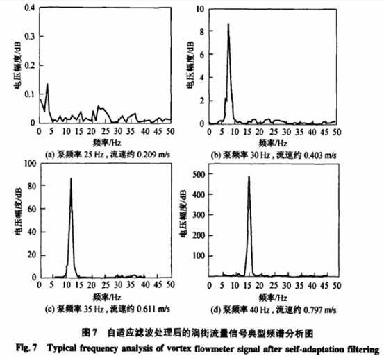 本研(yán)究對不同流速和(he)泵頻率組合下的(de)渦街流量信号進(jin)行✍️了數據采集和(hé)頻譜分析,其中水(shui)泵采用格蘭富AP12.40單(dān)🈲級潛水泵,分别調(diào)節流速約0.209,0.403,0.611,0.797m/s.控制水(shuǐ)流速的大小,在每(měi)一開度下,再分别(bie)設置水泵工作頻(pín)率爲25,30,35,40Hz,以輸人‼️不同(tong)的振動幹擾信号(hào),如圖2所示.可見當(dāng)流速小時噪聲能(néng)量接近甚至大于(yú)實際信号能量,在(zài)線的頻譜分📐析很(hěn)難判斷..