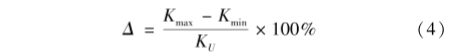 式中(zhong):Kmax爲同一流量點(diǎn)下不同工況下(xia)儀表系數最大(da)值;Kmin爲同一流量(liang)點下不同工況(kuang)下儀表系數最(zuì)小值。
