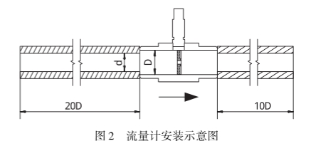 圖2爲(wèi)本次試驗渦輪(lun)流量計的安裝(zhuāng)示意圖,圖中D爲(wei)被校渦輪流量(liàng)計的通徑,d爲上(shang)下遊直管段的(de)内壁直徑。依據(jù)JJG1037-2008《渦輪流量計檢(jiǎn)定規程》的要求(qiú),保證上下遊的(de)直管段與被校(xiao)流量計同軸安(an)裝,并且連接處(chù)的密封墊不得(dé)凸入流體管道(dao)内,上遊直管段(duan)長度爲20D,下遊直(zhi)管段長度爲10D。試(shi)驗過程中,保證(zheng)試驗流體爲單(dan)相液體,介質爲(wèi)航空燃油RP-3,