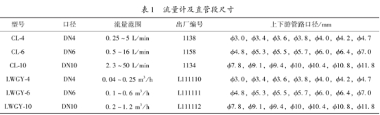 研究(jiu)中選擇常用的(de)CL系列渦輪流量(liang)計和LWGY系列渦輪(lún)流量計進行試(shi)驗。分别選取DN4,DN6和(he).DN10口徑的流量計(jì),且均爲0.5級。