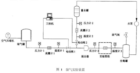 實驗介質由(yóu)已測定流量的空(kong)氣和水組成,其中(zhong)空氣☁️爲🎯氣💞相,水爲(wei)液相,分别送入管(guan)道混合成濕氣送(song)入實驗管段。實驗(yàn)裝置如圖1所示。實(shi)驗裝置由空氣🚶壓(ya)縮機、儲氣罐、蓄水(shui)罐、分離罐流量計(jì)、