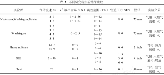爲了更好地比(bi)較不同工況下渦(wo)街流量傳感器測(ce)量誤差的變化,表(biǎo)2列出了不同研究(jiū)者的研究結果其(qí)中Test爲本次實驗結(jie)果。雖然不同研究(jiū)者的實驗條件相(xiàng)差較大,但通過表(biao)2仍可以總結出以(yi)下幾條規🌍律:液相(xiàng)含率越大渦街測(ce)量誤差越大;管道(dao)内壓力👄對測量結(jié)果影響比較大,壓(ya)力越大其測量誤(wu)差越小;實驗介質(zhi)對測量誤差有影(yǐng)響。