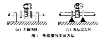 (1)安(ān)裝環境:平台常(chang)用的電磁流量(liang)計傳感器的外(wai)殼需要防🍉水防(fang)♋爆,對安裝場所(suo)的要求是:①當測(cè)量介質爲多相(xiang)流體時✂️,應選擇(zé)不會引起相分(fen)離的安裝場所(suǒ);②場所内的測量(liang)管線内不應♈有(yǒu)負壓;③避免安裝(zhuāng)在電動機、變壓(yā)器等強電設備(bei)附⛱️近,以免引起(qǐ)電磁場✌️幹擾;④避(bì)免安裝在周圍(wei)有強腐蝕性氣(qi)🌏本的場所;⑤環😄境(jìng)溫度一般👄應在(zài)-25℃~60℃範圍内,盡可能(néng)避免陽光直射(she);⑥安裝在無振🏃🏻♂️動(dòng)或振動小的😍場(chang)所,如果振動過(guò)大,則應在傳感(gǎn)器前、後的管道(dào)加固定支撐,如(rú)圖1所示;⑦環境相(xiang)對濕度一般應(ying)在10%~90%的範圍内[臼(jiù);⑧安裝流量計的(de)場所因盡量避(bi)免雨🌏水潮濕❗。