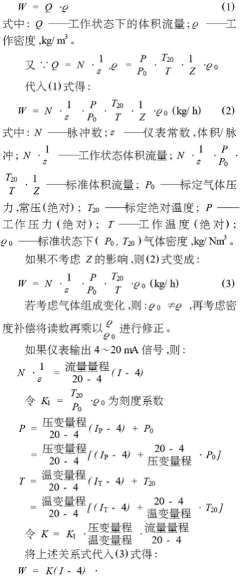 3漩渦流量計(ji)測量介質爲氣體(ti)時,溫度、壓力補償(chang)公式