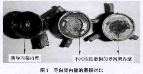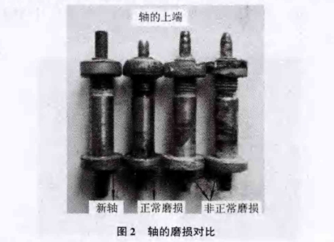 由圖1可(kě)看出非(fēi)正常磨(mó)損的導(dao)向架與(yu)新導向(xiàng)架内壁(bì)的差🤞異(yì)。這🐇是軸(zhóu)偏離水(shui)平線與(yu)導向架(jia)直接作(zuò)用的結(jié)果;由圖(tu)2可看出(chū)軸的磨(mo)損情況(kuang),正常磨(mo)損的軸(zhou)其前後(hou)端大小(xiǎo)☁️變化不(bú)大,隻是(shì)長短有(yǒu)變化,而(er)非正⭐常(cháng)磨損的(de)軸因過(guò)度🚶♀️磨損(sǔn)而呈現(xian)錐形。
