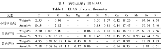 将渦街流量(liang)計的不鏽鋼(gāng)基底和圖1中(zhōng)的腐蝕産物(wu)進行EDAX分析,其(qi)測試結果如(ru)圖2和表1所示(shi)。可以看出,不(bu)鏽鋼基底含(han)有C、O、Si、Mo、Ca、Cr、Fe、Ni元素;黑色(se)腐蝕産物含(han)有C、NO、Al、Si、Mo、Ca、Cr、Mn、Fe、Ni元素;黃色(se)腐蝕産物含(han)有C、N、0、Na、Mg、Al、Ca、Cr、Fe、Ni元素。與不(bu)鏽鋼基底相(xiang)比.黑色腐蝕(shí)産物主要增(zēng)加了N、Al.Mn元素;黃(huang)色腐蝕産物(wù)主要增加了(le)✊N、Na、Mg、Al元素.兩者腐(fu)蝕産物共網(wang)增加了N和A1元(yuán)💋素。其中.N元素(su)直接來源于(yu)四☀️氧化二氮(dan)參與🔆反應形(xing)成的含🔴N産物(wù),而A1元素很可(ke)能來自周圍(wei)環境。比如水(shuǐ)中的雜質代(dài)入等。黃色腐(fu)蝕産物中的(de)Na和Mg的存在可(kě)以作爲佐證(zheng)。另外.不鏽鋼(gāng)基底N含量、0含(hán)量、Cr含量、Fe含量(liàng)、Ni含量的原子(zǐ)百分比爲0%、2.82%、17.45%、59.94%.7.40%.黑(hei)色腐蝕産物(wu)和黃色腐蝕(shí)産⭐物的N含量(liang)、0含量、Cr含量、Fe含(hán)量.Ni含量的原(yuan)子❄️百分比分(fèn)别爲3.37%、16.23%、15.57%.47.24%、5.65%和17.38%.68.93%、0.33%、3.83%.0.51%。由此(cǐ)🌍得出.與不含(hán)N元素的不鏽(xiu)鋼基⚽底相比(bǐ)。黑色腐蝕産(chǎn)物和黃色腐(fu)蝕産物的N含(hán)量和0含量更(gèng)高‼️.而Cr含量、Fe含(han)量和Ni含量相(xiang)對♻️更低.同時(shi)黃色腐蝕産(chan)物的N含量💃🏻和(he)0含量比黑色(sè)腐蝕産物的(de)N含量和O含量(liàng)要高很多。而(er)Cr含量🏒、Fe含量和(he)Ni含量相對要(yao)少很多。能譜(pǔ)結果表明.N元(yuán)素的參與導(dǎo)緻不鏽鋼基(ji)底表面的腐(fu)蝕.而N元素的(de)㊙️直接來源是(shì)四氧化二氮(dan).其與不鏽鋼(gang)基底表面在(zai)環境因素作(zuo)用下發生複(fu)雜的化學或(huo)電化學反🈚應(ying)☁️導緻N元素進(jin)入腐蝕産物(wù)中。黃色腐蝕(shi)産物比㊙️黑色(se)🥰腐蝕産物的(de)🌍腐蝕程度更(gèng)重.這也表明(míng)不鏽鋼基底(dǐ)💔表面的腐蝕(shi)程度與進入(rù)腐蝕産物中(zhong)的N含量有關(guan)。由于四氧化(hua)二氮本身不(bú)與幹燥的不(bú)鏽鋼反應,故(gu)😄存在某種中(zhong)間反應物質(zhì).該物質含量(liàng)越高.不鏽鋼(gang)📞基底表面✍️腐(fǔ)蝕越嚴重。