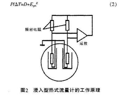 浸人型熱(re)式流最計的工(gōng)作原理如圖2所(suo)示,一般将兩個(gè)熱電阻