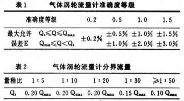 氣體渦輪流(liu)量計的精度(du)等級見表1、表(biao)2。