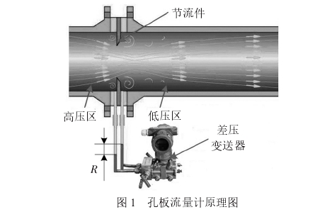 ,工作(zuo)時,充滿管道的(de)原油流經管道(dào)内的節流件後(hou)📧會在節流🆚件附(fù)近造成局部收(shou)縮,流速增加,從(cong)而在🐪其上、下遊(yóu)🤞兩側産生靜壓(ya)力差四。節流件(jian)兩側産生的靜(jing)壓🐆力差即就是(shì)孔🔞闆前後流體(tǐ)的壓力變化可(kě)通過U型管壓差(chà)計内指示液的(de)高度變化R來反(fǎn)應,再根據高度(du)差R即可推算出(chu)流量,如式(1)所示(shì)。此外,也可💔通過(guo)安裝差壓變送(sòng)器