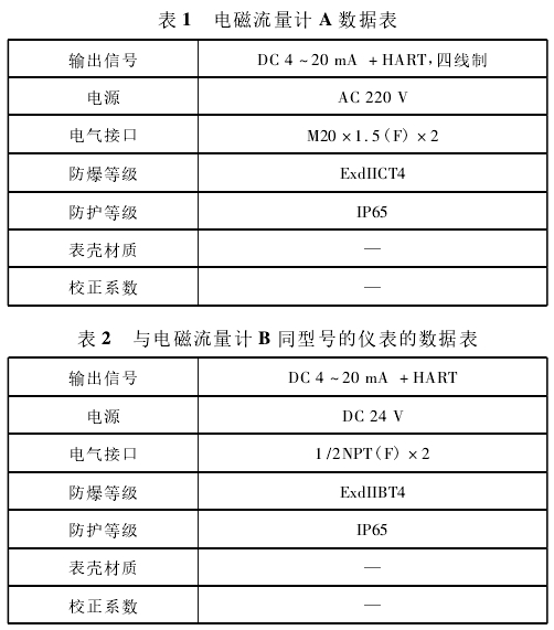 用(yong)不同型号的(de)電磁流量計(ji)B替換電磁流(liú)量計A,首先🈲要(yào)🛀🏻審核👣儀表的(de)電氣接口和(hé)數據類型,現(xiàn)場儀表已經(jing)安裝,電🐅纜敷(fu)設完畢,供電(diàn)電壓固定,AI/DI/AO/DO信(xìn)号類型也✍️被(bei)DCS卡件固定(部(bu)分廠家卡件(jian)可以适應💚不(bú)同信号類🌈型(xing)并自動讀取(qu)),所以這些基(ji)本是不可變(bian)的。先檢查♻️儀(yi)表安裝的電(diàn)氣部分,經查(cha)電磁流量計(ji)A的數據表🌏如(rú)表1,與電磁流(liu)量計B同型号(hào)的儀表的數(shù)據表如表2。