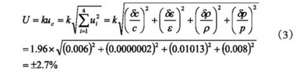 對于天然(rán)氣而言,可膨脹性(xing)系數的不确定度(du)爲:δc/c=±4(△p/p1)%