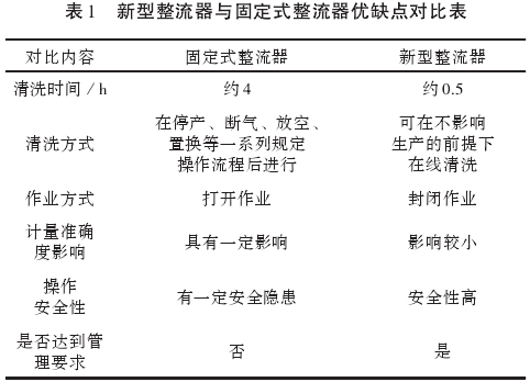 新型整流器(qì)較傳統固定式(shi)整流器在清洗(xǐ)時間、清洗方式(shi)、作業方式、計量(liang)精度影響以及(ji)操作的安全✂️性(xìng)方面具有更好(hao)的效果,提高工(gōng)作效率的同時(shí),對作業期間的(de)安全性也有了(le)明顯保障💞(表1)。同(tóng)時,根據相關管(guan)理規定,計量設(shè)備需在半年内(nèi)清洗、維護,但受(shou)實際生産條件(jian)的限制,難以達(dá)到管理規定要(yào)求✌️,新型整流器(qi)☂️設計的提出,可(kě)有效解決無法(fa)按期清洗維護(hu)的✔️問題。