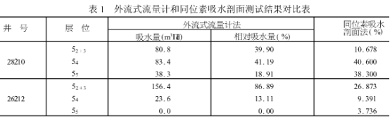 注(zhu):表中外流式(shi)流量計法吸(xi)水量爲外流(liu)式流量計所(suǒ)測❤️結果,其相(xiang)對吸水量由(you)外流式吸水(shuǐ)量計算得到(dào),其中28210井配水(shui)期間配注量(liàng)爲198m',26212井爲178m’。