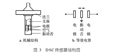 DSC傳感(gan)器爲外置懸臂(bi)式結構(圖3),獨立(li)于.儀表旋渦發(fā)生體但又徑向(xiàng)插入發生體的(de)中心孔中,并與(yǔ)兩側導壓🔞孔連(lian)通,以📞檢測⭐卡門(mén)旋渦壓力的變(biàn)化。它實質是一(yī)個電容式機-電(diàn)轉🧡換器。