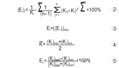 式中:(E)爲第(di)i個測量點的系(xi)數重複性;Kr爲.第(di)i個流量點的平(píng)均儀☎️表系數:n爲(wei)第i個流量點的(de)測量次數:Kij爲第(di)i個流量點第j次(ci)測量得到的儀(yi)表系數值;`K爲流(liu)量計儀表系數(shù)值;(Ki)max爲㊙️各流量點(dian)系數Ki中最大值(zhí):(Ki)min爲各流量🐪點系(xì)數K中最小值:EL爲(wèi)線性度。