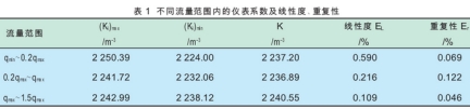 從表1中(zhong)數據可以看出(chu),在qmin~0.2qmax的流量範圍(wéi)内,儀表系數🌈出(chu)現✉️峰值,線性度(dù)爲0.590%,重複.性爲0.069%,其(qí)測量誤差已在(zài)允差範圍内(±2%),符(fu)合流量計精度(dù)要求:在0.2qmax~1.5qmax的流量(liang)範圍内,儀表系(xì)數始終處于穩(wěn)定的狀态,尤其(qí)是在 qmax~1.5q,max的流量範(fan)圍内,線性度僅(jǐn)爲0.109%,重複性高達(dá)0.046%,儀表系數變化(hua)幅度非常小,流(liú)✍️量計的測量正(zheng)确率就非常高(gao)。