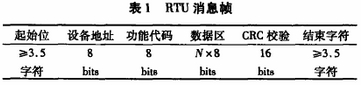 一個RTU消(xiao)息幀由地址域、功(gōng)能域、數據域、CRC校驗(yan)域外加✌️起🤟始位和(hé)結束字符共同構(gou)成,其典型格式如(ru)表1所示。