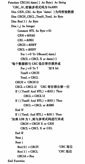 在(zài)Modbus标準通信中,對于(yú)即将被傳輸消息(xi)中的字符串🔅必須(xū)👄進行CRC校驗,目的是(shi)發現數據傳輸過(guò)程中可能出現的(de)錯🈲誤。常用的校驗(yàn)多項式有CCITT和CRC-16,本系(xì)統采用CRC-16,其多項式(shi)爲G(x)=xl6+xI5+x2+1,實際應用時取(qu)其🆚反序。
