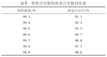 表2爲計算(suan)出的不同體積(jī)百分數所對應(ying)的質量百分比(bǐ)。