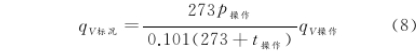 由式(shì)(7)可推導出操作(zuò)狀态下和标準(zhun)狀态下的理想(xiang)氣體體積流量(liàng)換算關系: