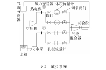 試驗(yàn)是在東北電力(li)大學氣液兩相(xiang)流試驗台上進(jin)行的,試驗介質(zhi)爲空氣和水,試(shi)驗錐形孔闆孔(kong)徑比爲0.67,前錐角(jiǎo)等于🤞30°,後錐角等(děng)💋于45°,過度平台長(zhang)度爲2m,管徑d爲30m,取(qu)壓方式爲,環室(shi)角接取壓。試驗(yàn)流程如圖3所示(shì)。試驗參數🔆範圍(wéi):壓力:209~260kPa;質量含氣(qì)率:0.00021~0.028;溫度:13~15℃;總質量(liang)流量3224~11546kg/h。采樣頻率(lǜ)爲256Hz,采樣時間16s。