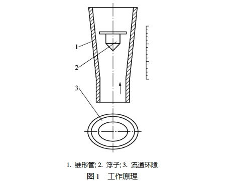 浮子(zi)流量計(ji)的結構(gòu)和工作(zuo)原理如(ru)圖1所示(shi),由.其工(gōng)作原理(li)可以得(dé)出流量(liang)基本方(fāng)程式爲(wei):