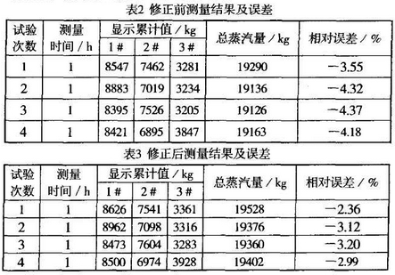 兩台20t/h鍋(guō)爐交替運行(hang),1#和2#管道爲φ325mm,3#管(guǎn)道爲φ273mm,壓力爲(wei)0.3~0.4MPa,溫度250℃。流量計(jì)出廠㊙️時儀表(biǎo)常數爲Kep=258.00次/m³,修(xiū)正後的儀表(biao)常數爲Kt=255次/m3。其(qí)修💁正前、後的(de)測量結果及(ji)誤差見表2和(hé)表3。