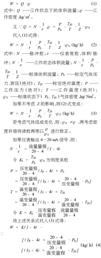 3漩渦流(liu)量計測量介(jie)質爲氣體時(shí),溫度、壓力補(bǔ)償公式