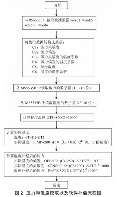 摘要:介紹了一(yi)種渦輪式氣體(tǐ)流量計 的溫度(dù)、壓力補償方法(fa),該方法采用MS5535B傳(chuan)感器測量被測(ce)氣體的溫度和(hé)壓力,采用軟件(jiàn)方法進行補償(cháng)。 0引言 氣體的流(liú)量通常用體積(jī)流量來表示,體(tǐ)積流量是指單(dan)位時間内通過(guo)管路任一截面(mian)的氣體體積。但(dàn)是由于氣體分(fen)子排列松散,随(sui)着溫度或壓力(lì)的變化,分子⭐間(jian)距會📧發生變㊙️化(huà),體積也會發生(shēng)相應的變化。體(tǐ)積與壓力成反(fǎn)比,與溫度成正(zhèng)比,在溫度和壓(ya)力變化的情況(kuàng)下,無法計量和(he)比較氣體的體(tǐ)積流量,需要将(jiang)其🌐統一轉換爲(wei)标準狀态下的(de)體積流量。工程(chéng)上氣體流量--般(ban)都以📱标準狀态(tài)下的體積流量(liang)㊙️來表示。因此,需(xu)要對🌐工作狀态(tài)下測得🔱的氣體(ti)流量進行溫度(dù)🏃♀️、壓力補償"。 1渦輪(lún)式氣體流量計(ji)的溫度、壓力補(bu)償方法. 渦輪式(shì)氣體流量計直(zhí)接測量的是工(gōng)作狀态下氣🆚體(tǐ)的體積☎️流量,标(biāo)準狀态下氣體(tǐ)的體積流量爲(wèi): 式中qvn、qv一分别爲(wei)标準狀态和工(gōng)作狀态下的體(ti)積流量,m³/h;p、T、Z一分别(bie)爲工作狀态下(xia)絕對壓力(Pa),熱力(li)學溫度(K)和氣體(tǐ)👄壓縮系數;pn、Tn、Zn一-分(fèn)别爲标準狀态(tai)下絕對壓力(Pa),熱(re)力學溫度(K)和氣(qì)體壓縮系數日(ri)🧑🏽🤝🧑🏻。 由于被測氣體(ti)所處狀态壓力(lì)較低,且溫度大(dà)大.高于👌臨界溫(wēn)🏃♀️度🐅,因此可以按(an)理想氣體計,這(zhè)時氣體壓縮系(xi)數取爲18。将測量(liang)得到的工作狀(zhuang)态下的溫度和(hé)壓力數值帶入(rù)(1)式,即可得到補(bu)償後的氣體流(liu)量數值。 2溫度、壓(yā)力測量用傳感(gan)器 工作狀态下(xia)的溫度、壓力數(shu)值可采用型号(hào)爲MS5535B的集成🏃♂️壓🙇♀️力(lì)傳感🌈器來進行(háng)測量。MS5535B的主要功(gōng)能是将從壓阻(zu)式壓力傳感器(qi)輸出的未經補(bǔ)償模拟電壓值(zhí)轉㊙️換爲16位的數(shu)字量,同時提供(gòng)-一個傳感器溫(wēn)度的16位數字量(liàng)。該❓芯片具有如(ru)下特點🔴: 1)0-14bar的絕對(duì)壓力範圍 2)芯片(pian)中存有用于軟(ruan)件補償的6個系(xi)數 3)15位的ADC. 4)3線串行(hang)接口. 5)1個系統時(shí)鍾(32.768kHz) 6)低電壓低能(néng)量消耗 7)供電電(diàn)壓在2.2V~3.6V 8)低電壓電(dian)流 9)-40~+125℃工作溫度 MS5535B有(yǒu)8個引腳,引腳定(dìng)義和功能如表(biǎo)1所示。 3溫度、壓力(lì)測量傳感器與(yu)單片機的接口(kǒu).電路設計 MS5535B與單(dan)片機MSP430F147的通信是(shì)通過3線同步的(de)串行接口實現(xian)的。圖1爲壓力傳(chuan)感器MS5535B和單片機(jī)MSP4320F147的硬件連接圖(tu)。單片機MSP430F147的🙇♀️P2.1引腳(jiao)🔞輸出同步串行(hang)時鍾信号,P2.4引腳(jiǎo)采樣由MS5535B輸出的(de)數據,P2.2引腳輸出(chū)數據給MS5535B,P2.0引腳向(xiàng)MS5535B輸出32.768kHZ的主時鍾(zhōng)🛀信号。 4軟件設計(jì) MS5535B輸出的電壓與(yu)溫度和測量過(guo)程的誤差有很(hen)大關系⭐,所以需(xū)✏️要補償這些影(ying)響。補償是通過(guo)單片機MSP430F147軟件補(bǔ)償來實現的。補(bǔ)償用的校準數(shu)據Wordl到Word4存儲在MS5535B的(de)64位PROM中,可通過單(dan)片機MSP430F147的軟件讀(dú)出用于對16位的(de)壓力值(D1)和16位溫(wen)度值(D2)進行補償(chang),得到用于渦輪(lún)式氣體流量計(jì)溫度、壓♊力補償(chang)的壓力值和溫(wen)度值。圖2描述了(le)讀取壓力值、溫(wen)💰度值和軟件補(bu)償執行的過程(chéng)。首先,通過串行(háng)✨接口讀出wordl到word4。下(xia)一步,用位方式(shi)邏輯和移位操(cāo)作取出補償系(xì)⛱️數C1到C6(wordl到word4的位模(mo)式參🔴考表2)。然後(hòu)單片機MSP430F147通過串(chuan)行接口讀取16位(wei)的壓力值(D1)和16位(wèi)溫度值(D2)。最後,通(tōng)過D1、D2和C1到C6運用圖(tú)2所示的運算法(fa)✍️則計算出補償(chang)後的壓力值。 Wordl到(dào)Word4、D1和D2是通過3線同(tong)步串.行通信讀(du)取的。MS5535B在SCLK的,上升(sheng)沿采樣一位,并(bìng)且在上升沿發(fa)送一-位,以此來(lai)實現信号轉換(huàn)的同步。單片機(jī)MSP430F147在SCLK的下降沿采(cǎi)樣從MS5535B的DOUT引腳輸(shu)出的數據,并且(qiě)在SCLK的下降沿将(jiang)數據發送到MS5535B的(de)DIN引腳,SCLK信号是👨❤️👨由(you)單片機MSP430F147産生的(de)。輸出數據的選(xuan)擇通過向MS5535B的DIN(數(shù)據輸入)腳輸入(rù)相應的指令來(lai)實現。 如圖3所示(shì),MS5535B和單片機MSP430F147的每(měi)一次通訊都是(shi)以單片機❌MSP430F147向MS5535B芯(xīn)片的DIN腳發送一(yī)個指令序列開(kāi)始的。在每一個(gè)指令序列之前(qian)都有一一個開(kai)始序列(3個高電(diàn)平1),每一個指令(lìng)序列之後都有(yǒu)一個停止序🈲列(liè)(3位低電平0)。每一(yī)條指令有四位(wèi)組成,用于㊙️選擇(zé)由MS5535B的💰DOUT腳輸出的(de)是壓力、溫度或(huo)是校準數✌️據。在(zài)輸出壓力和溫(wēn)度時🔅,在停止序(xù)列的最後--位時(shí),MS5535B的DOUT腳會輸出一(yi)個應答信号一(yi)低電平到高👉電(dian)平的轉換,表示(shì)了一次轉換的(de)開始。應答信号(hào)之後,單片機MSP430F147向(xiang)MS5535B的SCLK腳輸人2個脈(mo)沖,然後再輸出(chu)低電平,保持MS5535B的(de)SCLK腳爲低,直到在(zai)MS5535B的DO